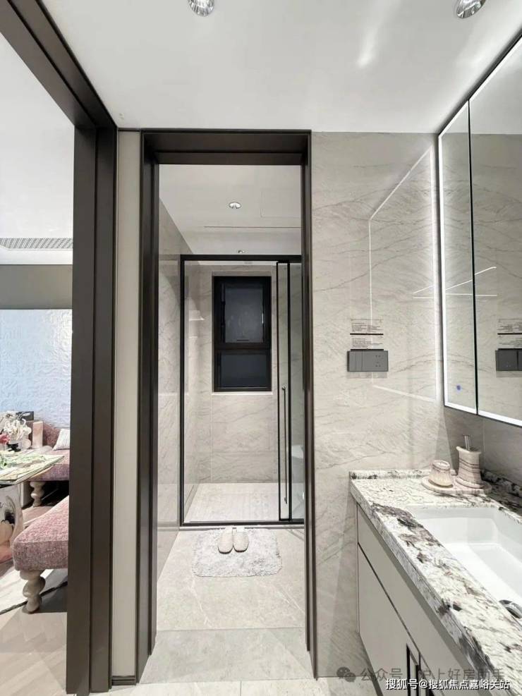 豪华的套房设计,北侧卫浴飘窗+南向床边双飘窗的设计,更是把这个空间的视野和收纳空间延展开来,尺度感真的很惊人。