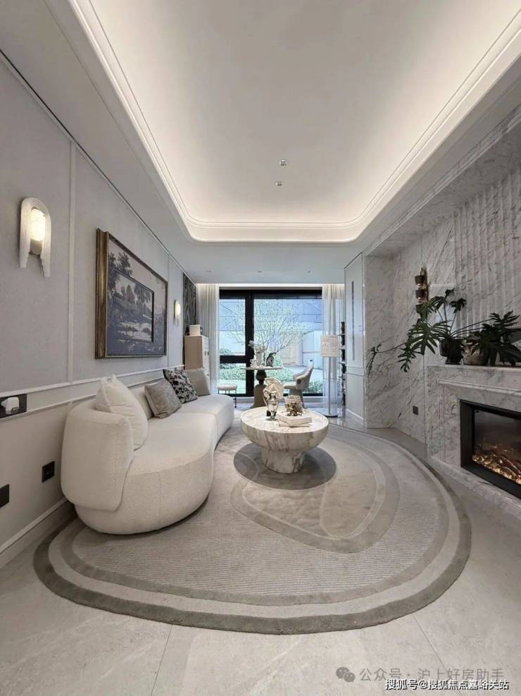 双轴线的设计,充分拓宽了视野面与观赏点位,环形回廊、精神游廊与下沉庭院通过立体景观平台相融,又创造出隔岸听泉的诗意场景。在每个重要生活触点,业主都能拥享独特景观和欣赏视野。