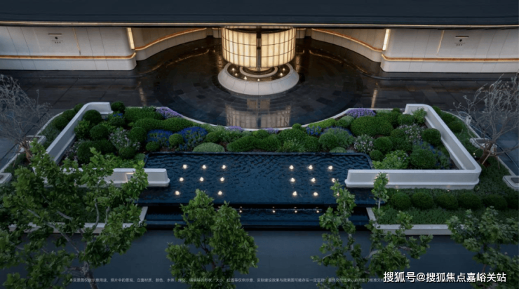 社区景观方面,项目运用室内手法室外化设计构想,将垂直景墙、悬浮观景台与叠水景观立体穿插,形成情随境转的沉浸式体验,自然元素渗透进室内,并与室内空间动态互动。