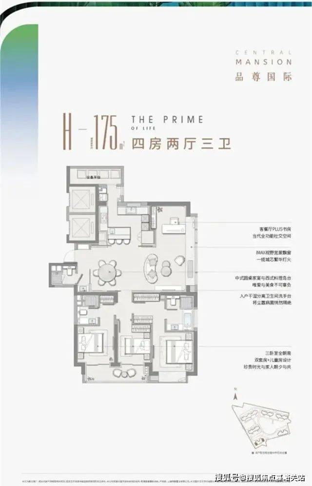 以项目建面约320㎡户型为例看下:3.2米层高,整个户型南北通透,约21米大面宽 270度 9.6米的南向IMAX巨幕空中花园设计,相当出众,无论是通风采光还是视野都得到了更大扩充。