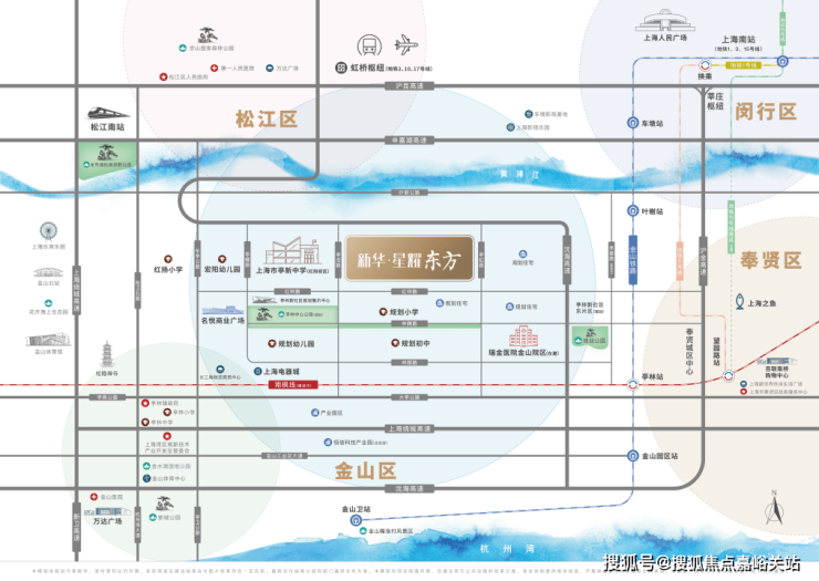 与奉贤、松江两区是邻居,到城央的直线距离,可以类比松江新城与奉贤新城。尤其是金山亭林,作为更靠近城央的地区之一,更有着先天的地理优势。
