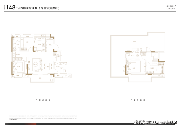 叠墅总高四层,设计了邻里空间,单元门设计也是非常的大气。上叠125㎡三房两厅三卫,顶楼闷顶层等可以拓展空间;下叠140㎡四房两厅三卫,另有超宽裕的赠送面积。