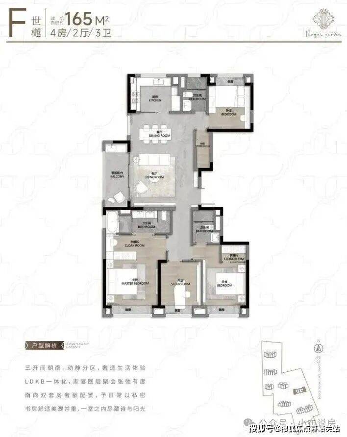 动静分离+客餐厅一体化设计,功能区和休息区互不干扰,客餐厅、厨房等公共活动区集中在一侧,卧室等休息区全部一侧,保证了私密性!