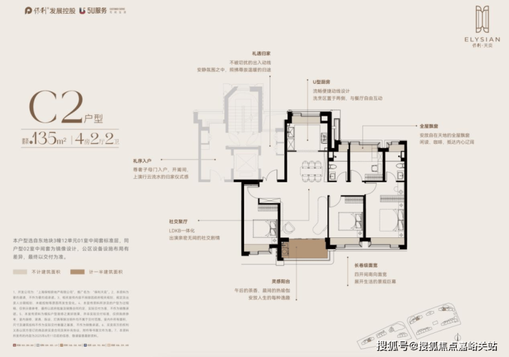 建面约135m²户型,在1100万级四房中,不仅拥有LDKB超宽客餐厅还拥有极致改善尺度!