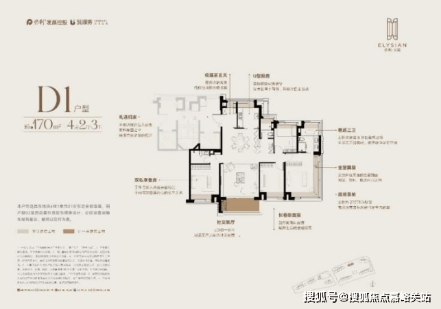 对于纯改善需求的量身定制,在前两个户型基础上,做了更尊奢的开间尺度。据说,保利前基于客户做了非常多的样本调研,所有亮点也能看到保利对于改善家庭需求的思考。
