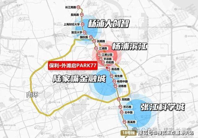 纵向18号线:贯通复旦/同济/财大杨浦大创智国际生态联盟、长阳创谷(小红书、得物总部)、杨浦滨江科创带(美团、B站千亿集群),6站陆家嘴缔造“智识-产业-资本”全链生态。