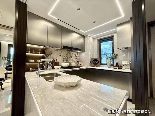 2、装标在线:开放式厨房配置嘉格纳三件套、铂浪高水槽及龙头也是标配,可谓是配置拉满!