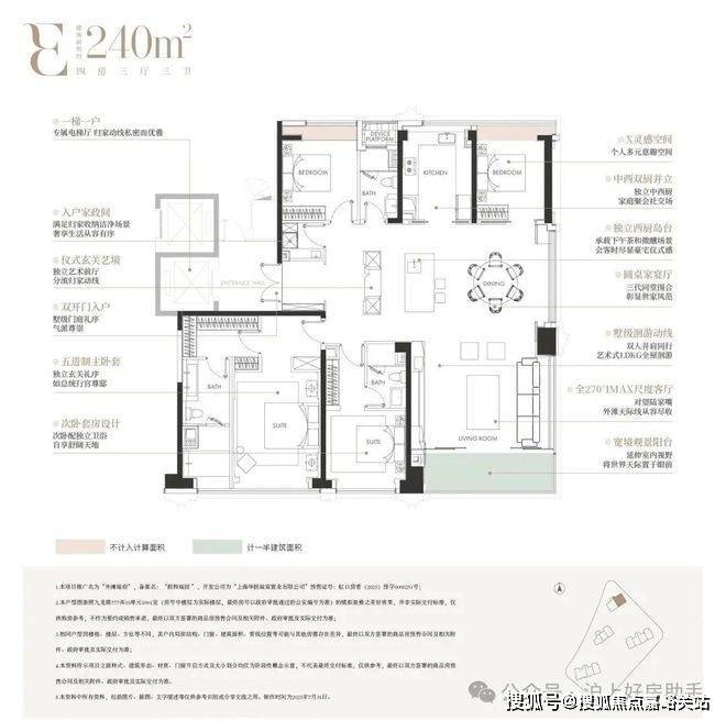 在这款240㎡户型中,主卧套房、背景墙、衣帽间提供三选一方案;材质可自由组合;入户门把手可选白雪公主玉、贝母、青玉等珍贵材质——定制渗透至触手可及的每一处细节-3。项目整体中小套型占比仅40%,意味着约60%的房源为改善型大户型,确保了社区的纯粹性与圈层高度-7。