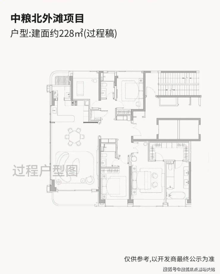 「中粮·北外滩壹号」即将入市的高层户型建面约185-228㎡纯粹4房,尺度感相当奢阔!高层户型均为两梯两户独立电梯厅配置,隐私性与尊崇感拉满!全落地窗设计,270°环幕大边厅户型相当惊艳!超大窗墙比+双套房格局形成多维观景的极致效果!仅90套,珍藏属性拉满!