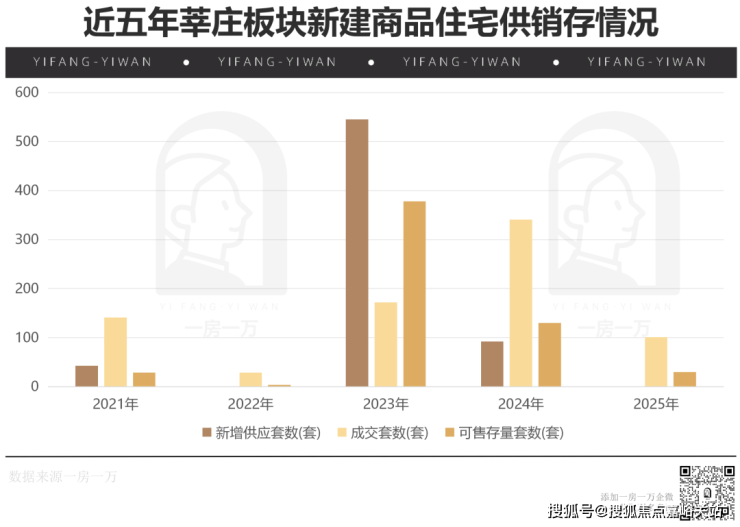近五年最大的供应高峰出现在2023年,也仅有保利建工海玥锦上和中企云启春申两盘入市,随后就进入了沉寂,直到今年的6批次土拍,莘庄才重新回到新房的视野。