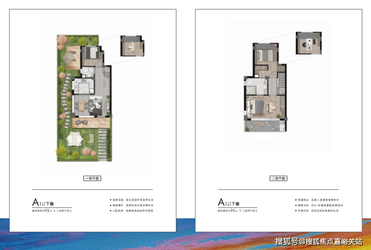 约95㎡户型拥有约5.1米大面宽,一层层高约3.2米,使得居室内采光观景效果更佳;主卧带观景阳台的设计,让四季景观尽收眼底。