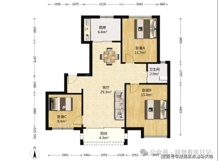 ✅ 建面96平3室2厅1卫|带大花园