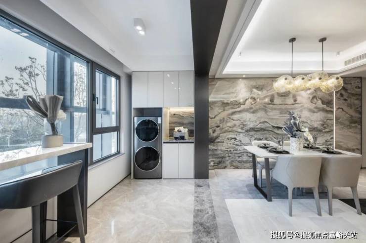 建面约105㎡为5.1米宽厅设计外接大阳台 ,这对黄金组合一方面撑开户内尺度,另一方面也让通风和采光俱佳。