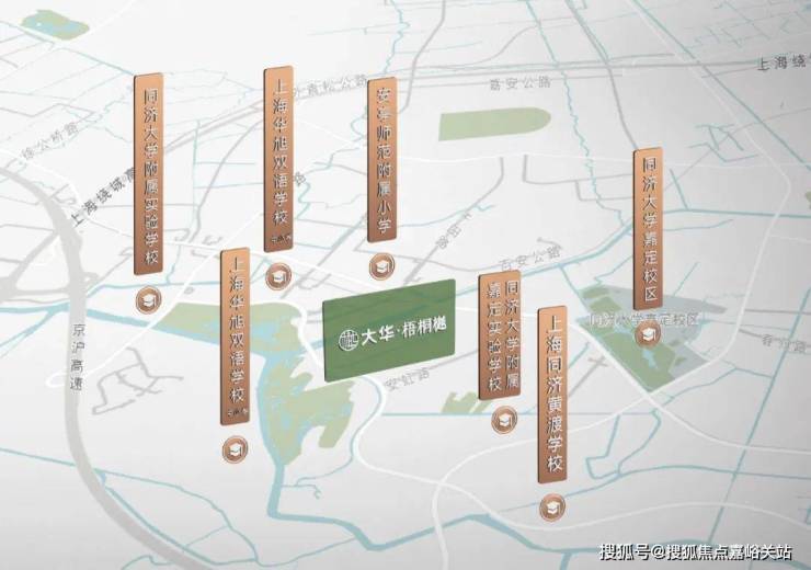 大华梧桐樾北侧不远处,就是9年制同济大学附属嘉定实验学校。不远处还有东方瑞仕幼儿园,同济大学(嘉定校区)。华师大附属双语学校,是嘉定区K-12(幼儿园、小学、初中、高中)双语学校,含金量高!让周边的发展前景值得期待。