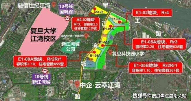E1-08A地块位于新江湾城北侧,直线距新江湾城站约1.2公里,地块容积率仅约1.1,限高约20米,预计将是洋房和联排的组合。其土地面积约5.71万㎡,建筑面积约6.28万㎡,出让总价为37亿元,折合楼板价约5.89万/㎡,住宅套数下限为455套
