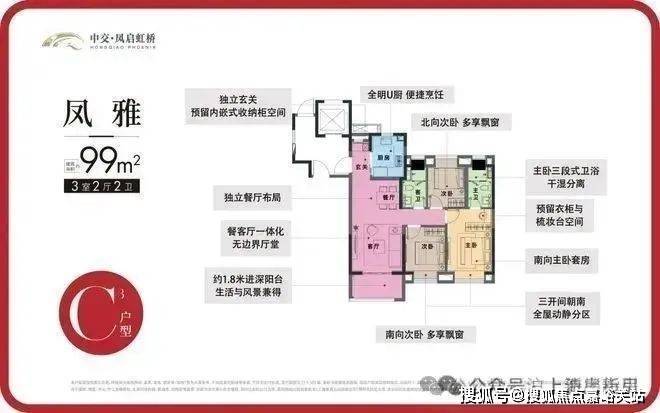 C3户型 | 3室2厅2卫 | 建筑面积约99㎡