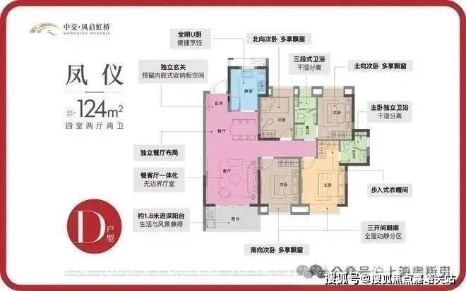 D户型 | 4室2厅2卫 | 建筑面积约124㎡
