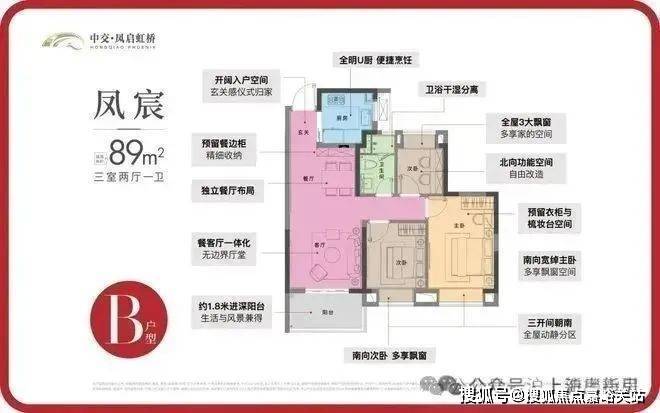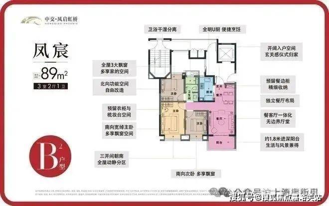 B2户型 | 3室2厅1卫 | 建筑面积约89㎡中交凤启虹桥售楼处电话:4008569058☑️☑️