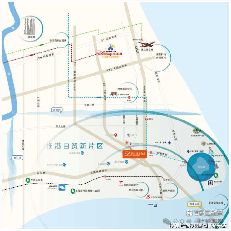 自驾可达临港自贸新片区上海海昌极地海洋公园、上海天文馆(世界最大)、冰雪之星(全球最大-在建)、中国航海博物馆、滴水湖景区、滨海森林公园、鲜花港、南汇嘴观海公园、上海野生动物园等;驱车半小时内可达上海迪士尼;周边2公里范围拥有上海南汇大团桃园、上海多利农庄生态园等休闲娱乐生活度假圈。