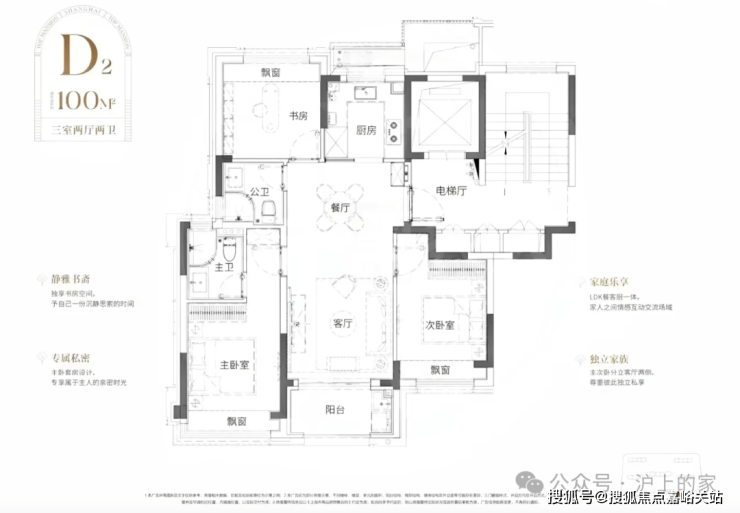 ①建面约100㎡3房户型: