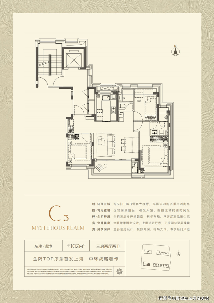 ·建面约102㎡:约5米面宽客厅,飞机户型高利用率