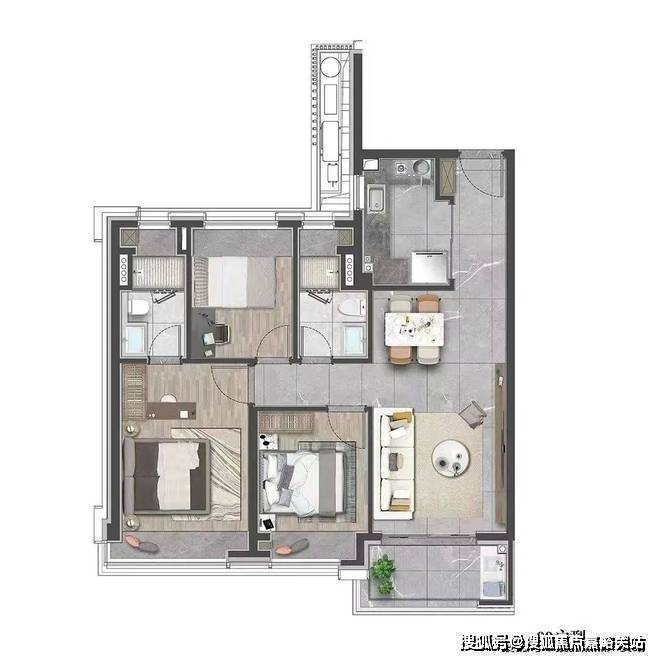 既适合三口之家小太阳家庭,也可以是三代同堂,每个人都能拥有独立空间。