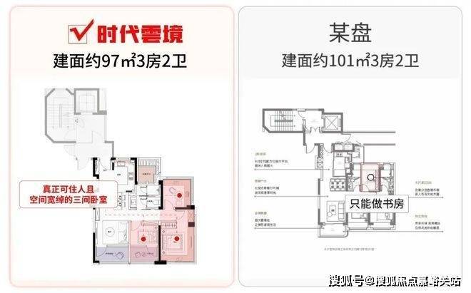 建面约97㎡的产品有两点跟大家着重提一下: