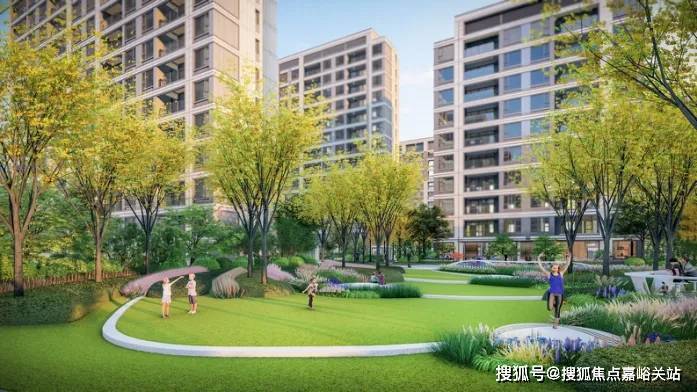 以公园+花园的双园社区、品质归家入口、特色阳光草坪、双会客系统、主题儿童乐园、健身系统这六大功能价值为主,并且融合由三条不同主题的林荫步道和三个圆形景观节点组成的“绿林项链”全区漫步系统,共同构成全区“6+1”森O₂家园系统。