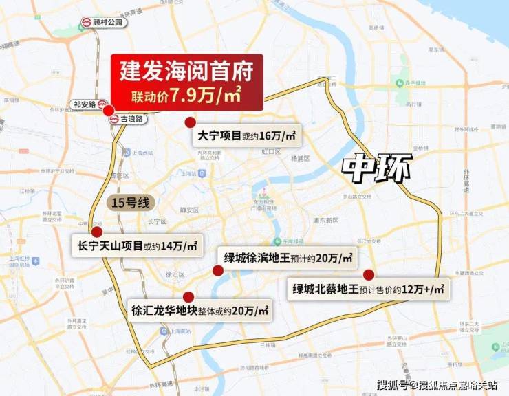 相比之下,联动价仅约7.9万/㎡的桃浦15号线地铁房——建发海阅首府,俨然是整个中环肉眼可见的价格洼地!