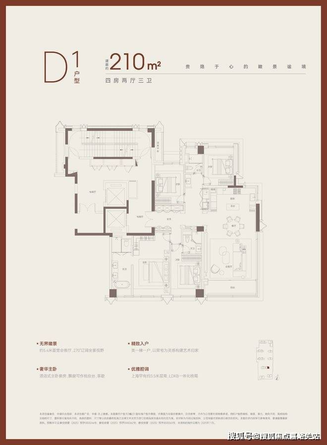 【3#210㎡户型】——南向俯瞰下沉式庭院,北侧私藏浮光池院。