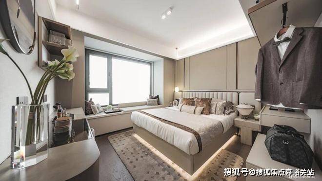尤其奢阔主卧,南向开窗面积大,床尾支持放置梳妆台,甚至衣柜。