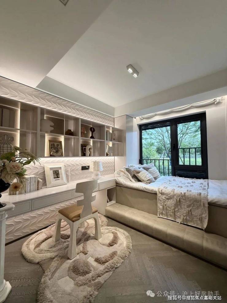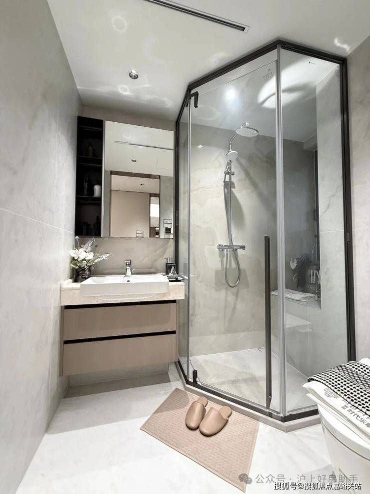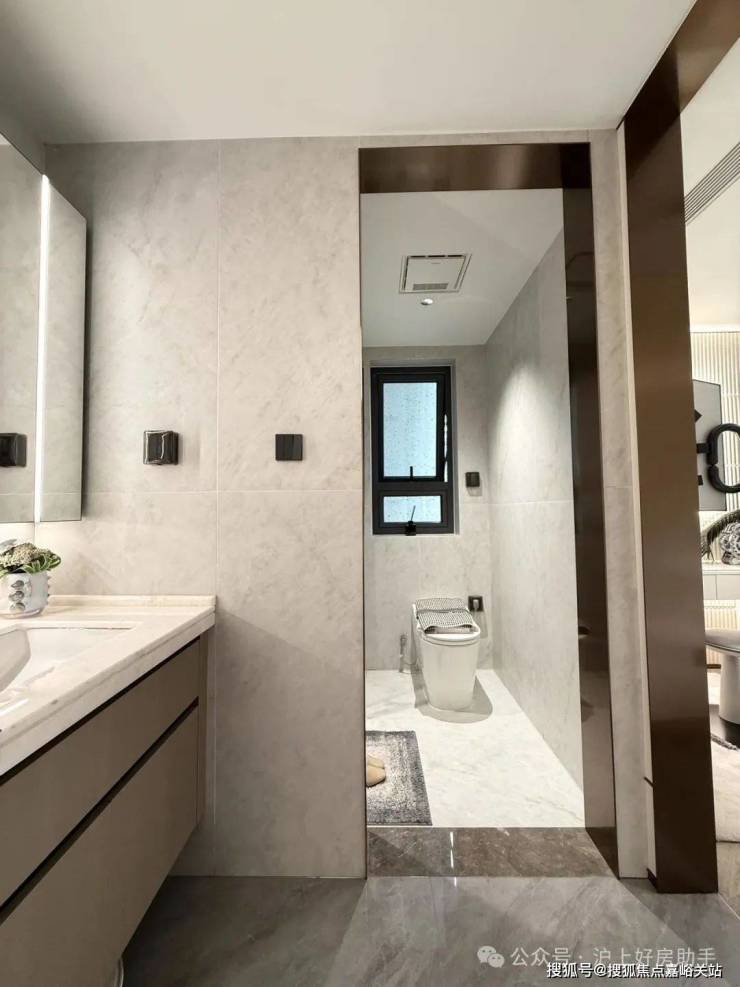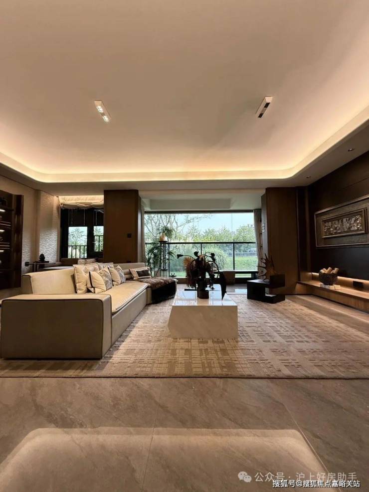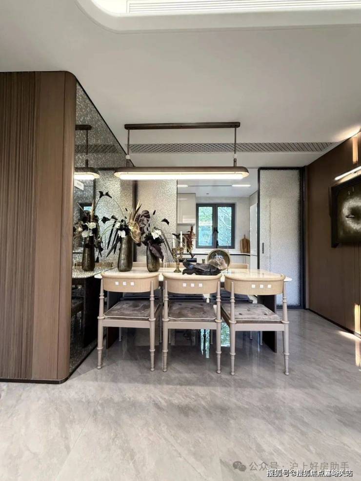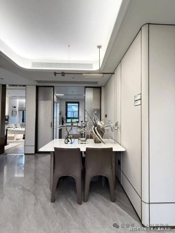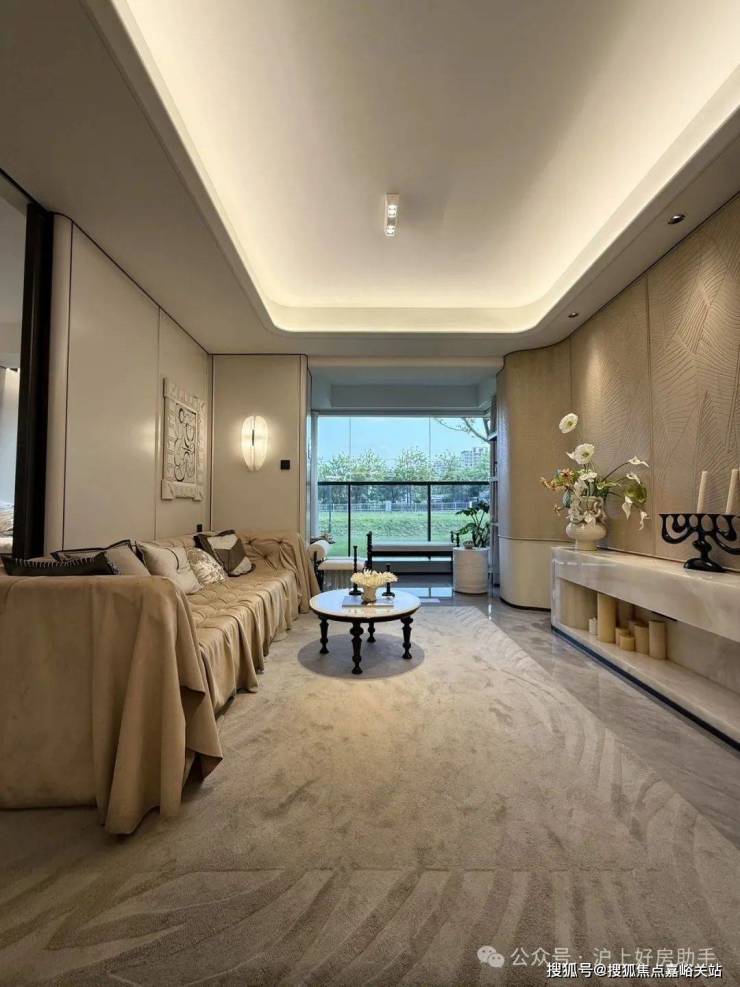 归家门厅设计为弧形顶棚,非对称构图,圆润的形式提供给业主放松的情绪价值。可以说是处处体现人居的松弛感和舒适度。