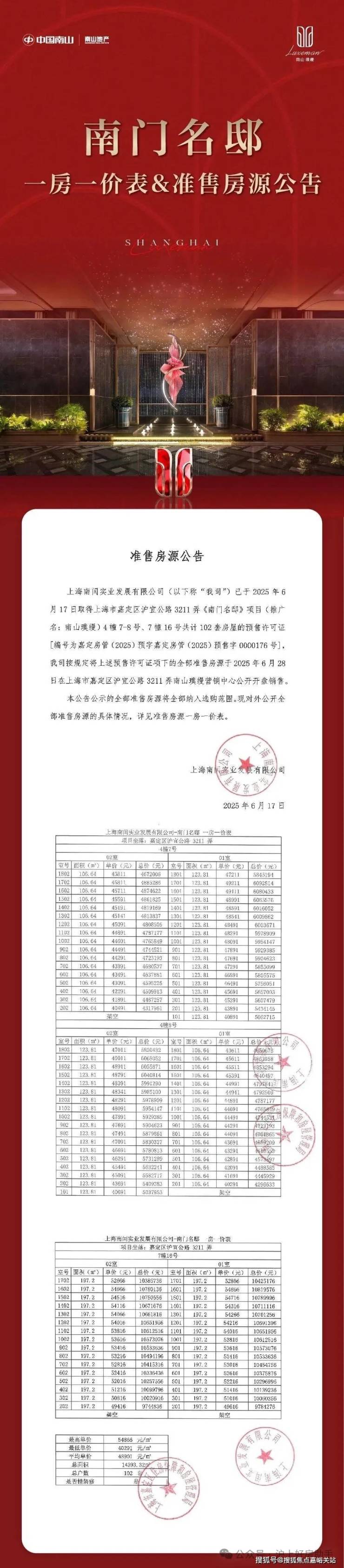 最新消息:嘉定新城封面:南山璞缦项目加推105-123㎡3房户型,共136套房源,过会均价 均价45675元/㎡;另前期少量105-198㎡3-4房在售,总价365万起,可直接认购!