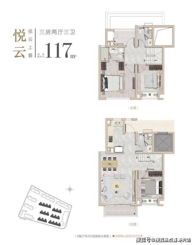 建面约117m²3房2厅3卫(上叠)同悦湾璟庭售楼处电话:400-8824-258