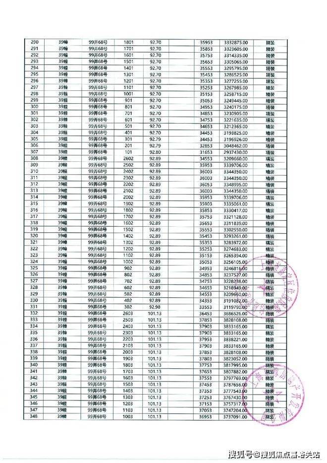 以下为项目最新一房一价表