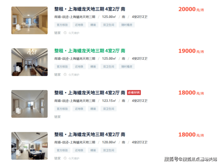 2、二手房回稳,租售比相当可观:据链家网显示,目前徐泾标杆蟠龙天地部分户型租金达到约2万/月,租售比超过3%,超越很多市区产品!