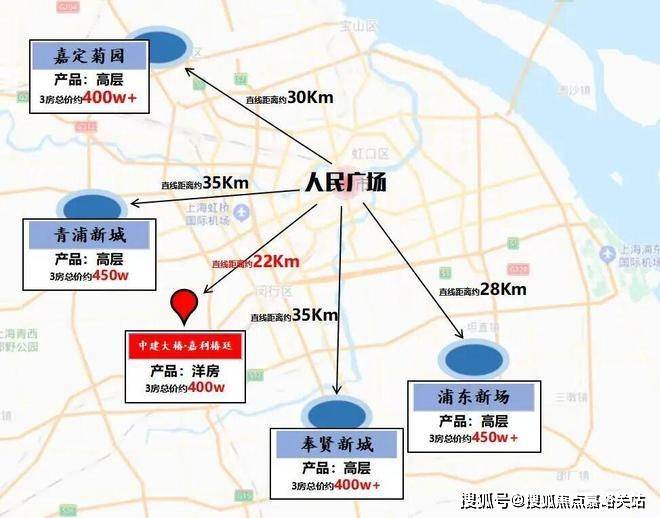 一,项目直线距离人民广场仅约24公里,当下上海同样距离人民广场24公里的板块,如南翔、徐泾、顾村,价格几乎都在500万级以上,中建大椿·嘉利椿廷仅400万级,是难得价格洼地;