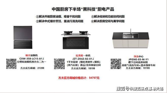 聚集了“集成烹饪中心”、“集成净洗中心”两大全厨房高端方案,实现从烹饪、排烟、洗净全流程一体化!