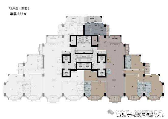 住宅户型呈金字塔造型,超大客餐厅,充分利用南向面宽,360°采光不浪费一丝一毫江景。