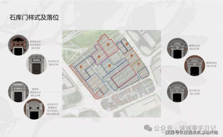 七坊、三十二弄、七大石库门串联起7大组团,八个不同规制的坊门,散落于组团之间,营造出了归家动线上的连续仪式
