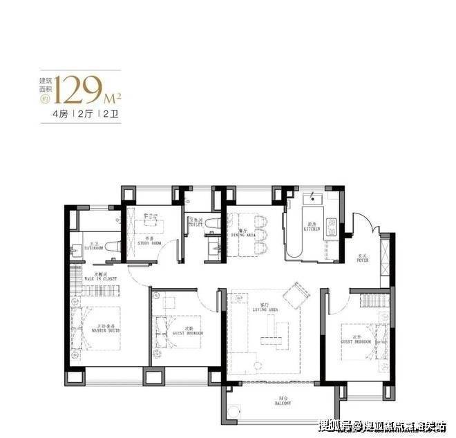 产品:103㎡、107㎡的三房两厅两卫及123㎡、129㎡的四房两厅两卫
