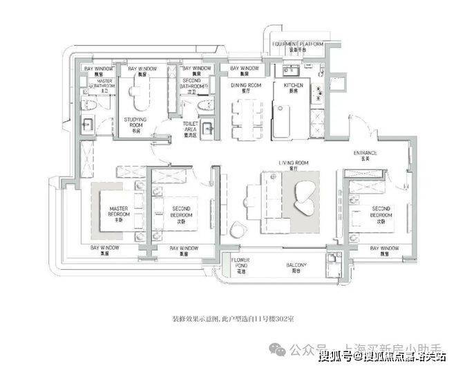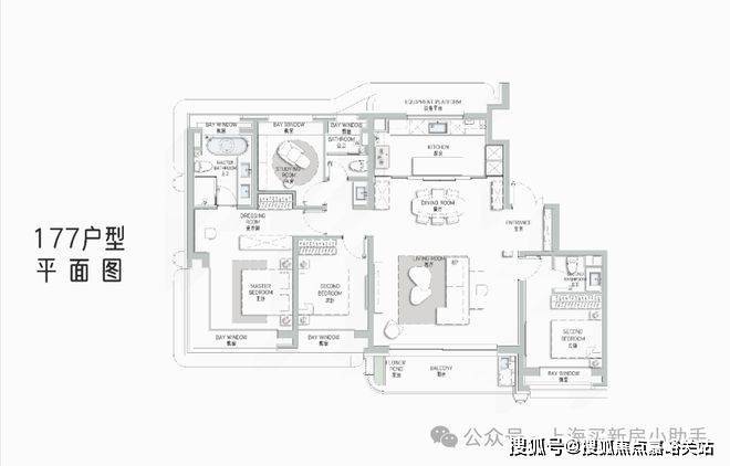 177㎡艺术贵雅奢邸是海上·清和玺压轴力作,延续玺系经典的设计理念和思路,阔朗的四面大开间设计,客厅做到了大横厅设计,延续了曲面流体的阳台,并赠送了独具特色的阳台迷你花园。