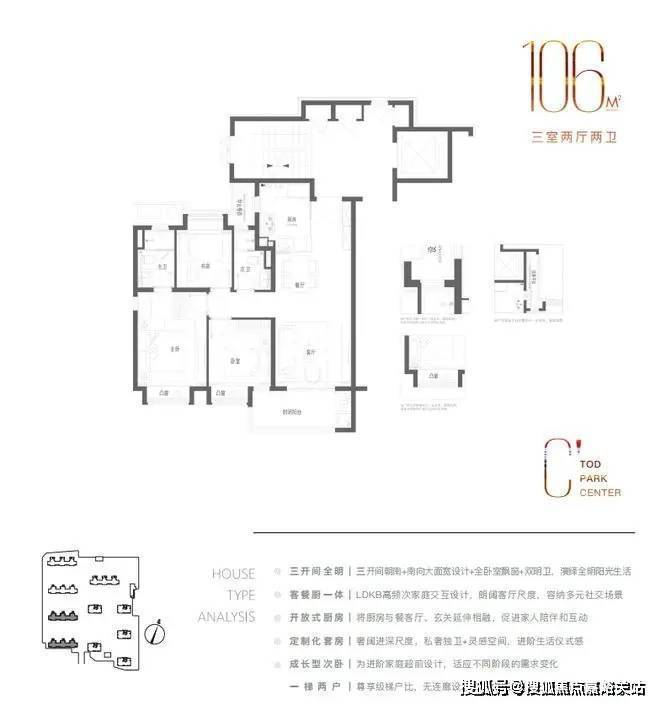 格局上,该户型是市场备受欢迎的三开间朝南+动静分区经典款户型。