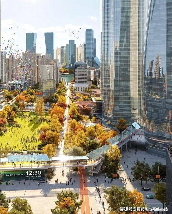 约50公顷慢行优先区(含22公顷无车区)的规划,超越纽约时代广场的纯步行区和东京丸之内商务区,将地面空间还给行人与商业;