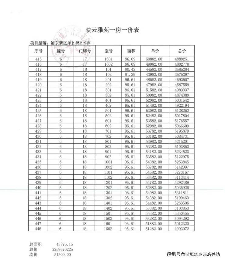 一房一价表