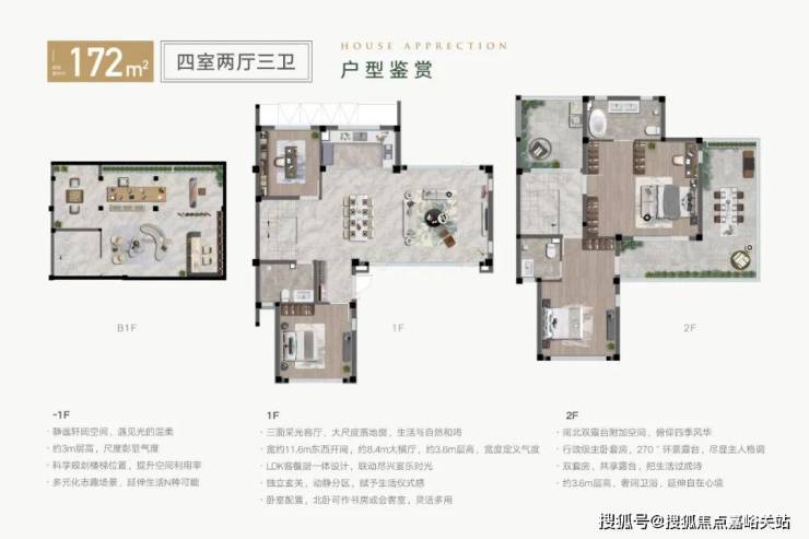 五个院子的别墅,以 3层空间规制、超大附加面积,以约129㎡四合院为例,首层开间约12m,IMAX级三面采光,最大可享约26㎡转角露台,约70㎡的阳光地下室