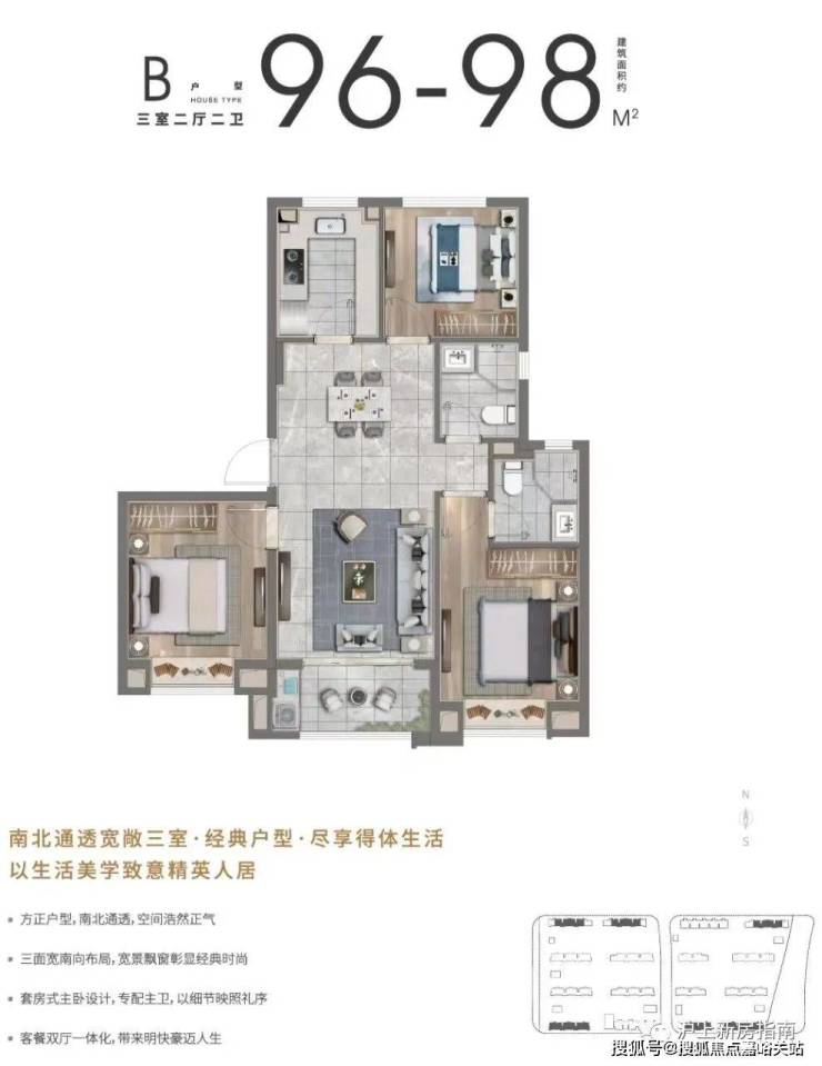 南区由8幢12F小高层与8幢8F洋房组成,享3.1米阔绰层高;超3.5米大面宽,全区奢配中央空调,甄选国际名品厨电与卫浴洁具,精装交付拎包入住。