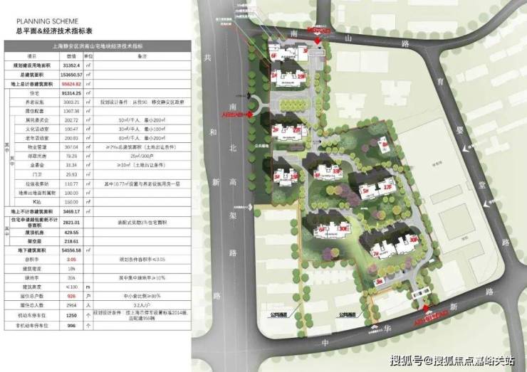 而北侧靠近南山路一侧还规划一幢最高6层的养老设施用房。在小区南北两侧的中华新路和南山路分别设有机动车出入口。