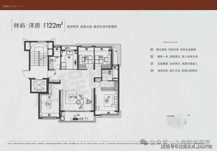 洋房平墅化:建面约108-124㎡精工洋房,以建面约124㎡四室洋房为例,超大餐客巨厅、独立主卧套房、独立书房,户型布局媲美平层别墅。可分可合厅房、全卧飘窗巧思,延伸日常生活的想象。