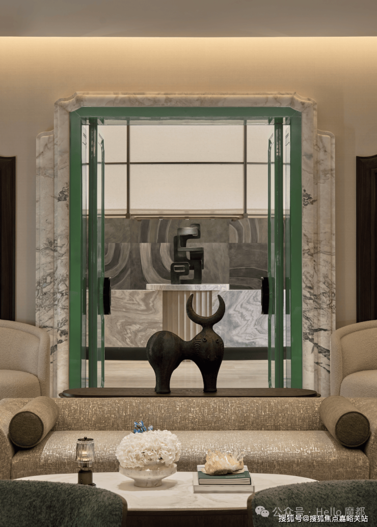 风貌配套会所 士林润园的会所位于项目的核心区域,与整体园区的景观、居住区有良好的联系。 会所也由傅厚民设计,室内通过诸多细节,展示连接过去与现在的对话。例如,特别设计了一条结合石库门拱门元素的通道,让人们在这里就能感受到一段传承的历史记忆。整个会所的布局开放、流畅,动静分明,让人一进门就能感受到宽敞与舒适。